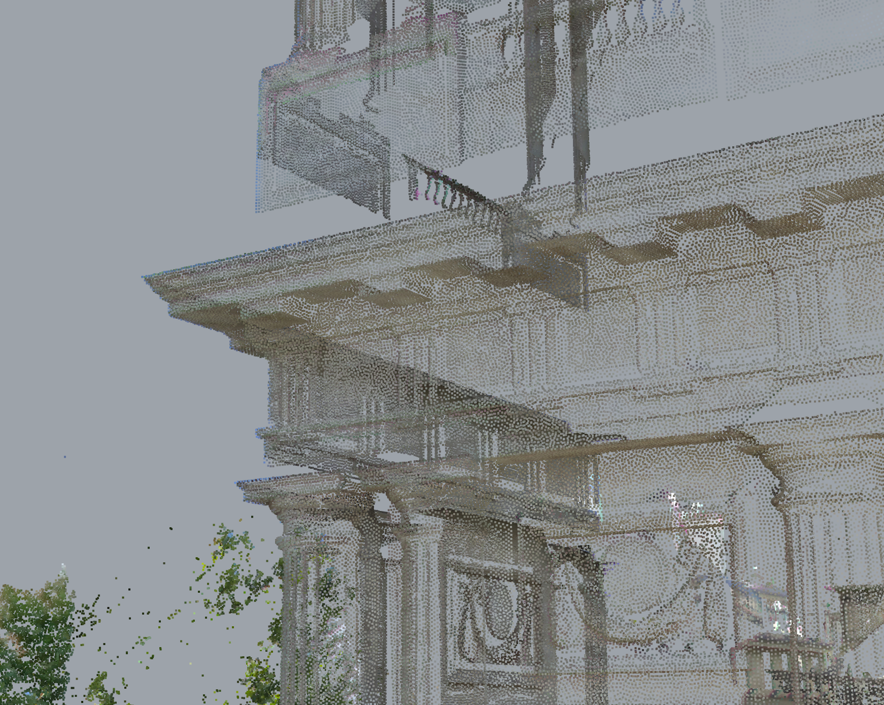 Detailed areas such as, complex facades, ornamental elements (filigree balustrades, detailed masonry etc) should be sampled at a higher rate to capture key details.We suggest a 10-50mm point spread.